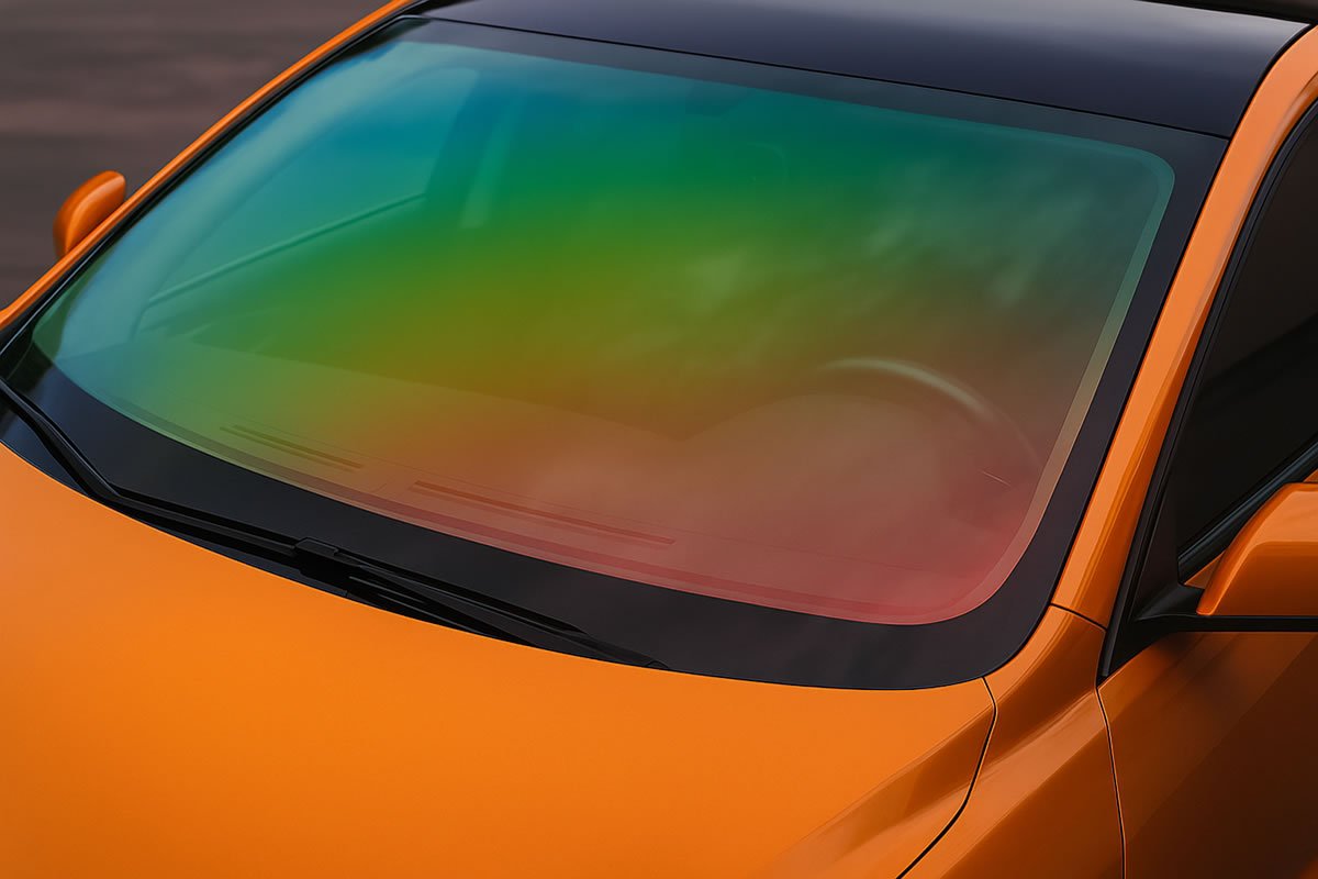 Los polarizados camaleón son láminas especiales que se aplican en los vidrios del vehículo y que cambian de color según la luz y el ángulo de visión. Sus tonos varían entre azul, morado, verde, dorado o rojo, ofreciendo un efecto visual moderno y llamativo.