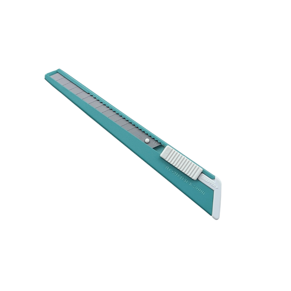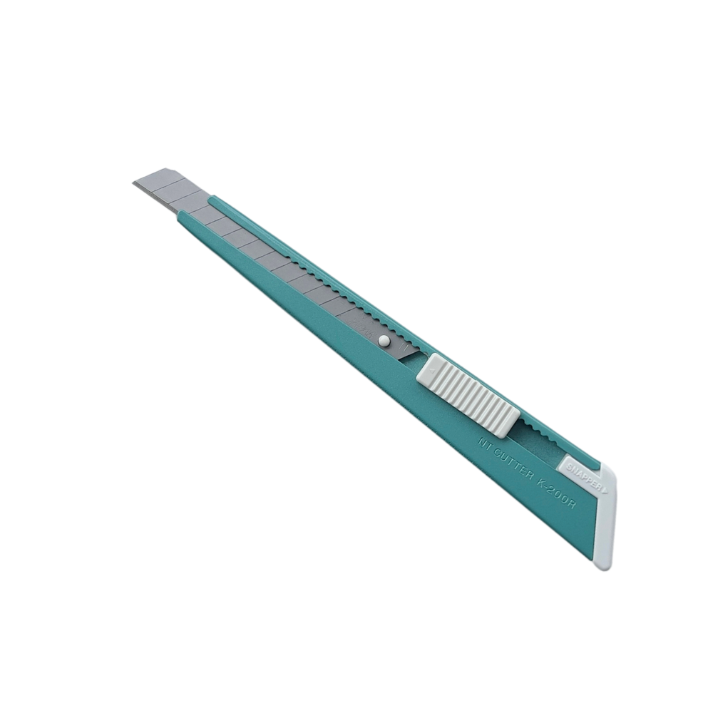 El NT K-200RP es un cúter profesional con cuerpo metálico liviano, diseñado para instaladores de polarizado que buscan precisión y durabilidad en cada corte. Su mecanismo de bloqueo automático tipo trinquete garantiza estabilidad y seguridad durante el uso, mientras que el rompedor de cuchillas integrado facilita el mantenimiento del filo.