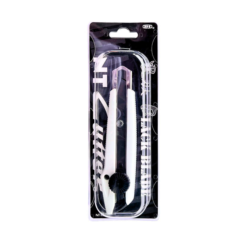 El NT MNCR-L1R es un cúter profesional de alta resistencia, diseñado para instaladores de polarizado que requieren cortes precisos y duraderos en láminas solares y de seguridad. Su cuerpo ergonómico en blanco y negro, junto con una cuchilla negra ultraafilada de 18 mm, ofrecen un equilibrio perfecto entre estética y funcionalidad.